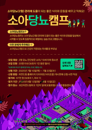 iN라이프케어이종협동조합연합회(이하 라이프케어연합회)와 자연드림유기농치유연구재단은 혈당 관리가 필요한 소아 청소년을 대상으로 건강한 생활습관 형성을 위한 '소아당뇨캠프' 참가자를 오는 23일까지 모집한다.최근 소아청소년 비만이 꾸준히 증가하면서 소아만성질환 환자 수도 덩달아 늘고 있어 사회적 우려가 커지고 있다. 소아당뇨의 경우 환자수가 꾸준히 증가하여 2022년 기준 약 1만 4천 명을 넘어서고 있다. 특히 2형 당뇨는 비만과 운동 부족 등으로 인한 인슐린 저항성이 주원인이며, 성장기 아이들의 경우 혈관 질환 등 합병증에 쉽게 노
