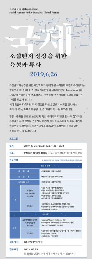 '소셜벤처 정책연구 국제포럼(SVPF)' 26일 개최