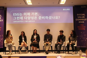 사회문제를 해결하는 다양한 이해관계자들의 연결·연대·성장을 이야기하는 'SOVAC 2023 OFFLINE'이 서울 광진구에 위치한 워커힐 호텔에서 15일 열렸다. 세션 'ESG는 이제 기본, 그런데 다양성은 준비하셨나요?'에서는 ESG 중 S에 해당하는 '사회'에 집중하며, 국내 소셜벤처의 다양성과 포용에 대해 논의했다. 사회를 맡은 구효정 서울소셜벤처허브 메니저는 "기업의 ESG 실무자를 대상으로 올해 가장 중요시한 키워드를 설문조사한 결과 E(환경)는 82%에 달하나 S(사회)는 9%에 그쳤다. S(사회)는 평가 관리가 까다롭기
