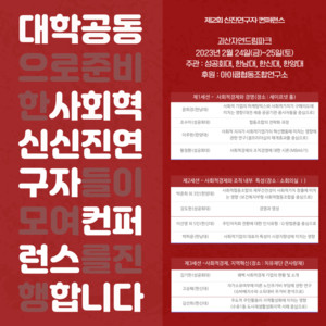 성공회대학교, 한남대학교, 한신대학교, 한양대학교 신진연구자들의 '대학공동 사회혁신 신진연구자 컨퍼런스(이하 신진연구자 컨퍼런스)'가 오는 24일과 25일 양일간 충청북도에 있는 괴산자연드림파크에서 진행된다. 신진연구자 컨퍼런스는 사회혁신에 대한 관심과 요구가 증가하고 있는 상황에서, 사회적경제를 연구하고 있는 연구자들이 보다 적극적으로 목소리를 내고 활동을 할 필요성이 증가해 서로의 연구를 나누며 앞으로의 미래를 고민해보고자 준비됐다. 이번 컨퍼런스는 1부와 2부로 나눠 진행된다. 1부에서는  ▲사회적경제와 경영 ▲사회적경제와 조직 내부 특성 ▲사회적경제와 지역이라는 3가지 주제로 나눠 연구자들 본인이 연구한 것을 발표하고 함께 토론한다. 2부에서는 네트워킹 장을 통해 서로를 알아가고 협업과 연대의 가능성을 탐색한다.