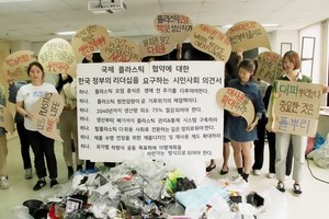 국제 플라스틱 협약 국내 대응단체 '플뿌리연대('플'라스틱 문제를 '뿌리' 뽑는 '연대')'가 플라스틱 국제협약을 위한 정부 간 협상위원회(INC) 4차 회의를 앞두고 한국정부에 시민사회의 의견을 전달하는 기자회견을 15일 열었다.플뿌리연대는 그린피스, 기후변화센터, 노동환경건강연구소, 녹색연합, 동아시아바다공동체오션, 발암물질없는사회만들기국민행동, 서울환경연합, 알맹상점, 여성환경연대, 자원순환사회경제연구소, 자원순환사회연대, 환경운동연합, BFFP, GAIA, RELOOP 등 15개 환경단체의 연합체다. 김나라 그린피스 플라스틱