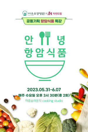 iN자연드림이 이우요양병원과 함께 '암 환우를 위한 항암식단 특강'을 5월 31일부터 6월 7일까지 총 2회차에 걸쳐 진행한다. 암환우들이 쉽고 간단하지만 암 예방, 재발, 전이를 방지하기 위해 꼭 필요한 먹거리들로 일상을 채울 수 있도록 하는 것이 특강의 취지다. 이우요양병원은 여성 암 환우를 위한 전문 공간으로 면역력의 근본인 일상생활의 건강함을 친환경적으로 지원하고 있다. 의·식·주를 통해 면역력을 개선하는 것이 치료의 기본이라는 기조 아래 자연드림을 비롯해 한살림, 두레 등 생협에서 친환경 유기농 식자재를 공급받아 식사를 제