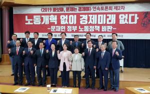 자유한국당 전희경 의원이 17일 오전 국회의원회관 제1소회의실에서 '바보야, 문제는 경제야 - 노동개혁 없이 경제미래 없다'라는 주제로 문재인 정부의 노동정책 비판 토론회를 개최했다. 이번 토론회는 지난 11일 열린 '바보야, 문제는 경제야 - 경제도 결국 철학이다' 이후 두 번째다.전 의원은 문재인 정부의 경제정책을 '경제철학', '노동', '재정', '복지', '세금', '기업', '금융규제' 및 &#