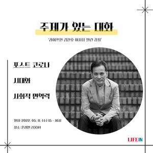 김찬호 라이프인 이사장의 특강 '주제가 있는 대화'가 오는 11일에 열린다. '주제가 있는 대화'는 라이프인 김찬호 이사장이 진행하는 '열린 강좌'이다. 누구에게나 열려 있는 강좌인 만큼 라이프인 후원회원 '라이프지기'를 비롯하여 누구나 참여 가능하다.5월 11일 처음으로 진행되는 김찬호 이사장의 '주제가 있는 대화' 주제는 '포스트 코로나 시대와 사회적 면역력'이다. 거리두기가 일상화됐던 코로나19 팬데믹 이후, 고립감이 깊어진 우리 사회의 관계 회복에 대해 이야기 나눈다.김찬호 이사장은 "3년에 걸친 팬데믹은 세상의 모습을 크게