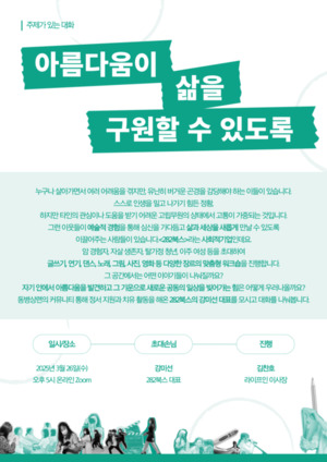 "내가 은둔 생활에서 나올 수 있었던 건 보험을 권유하려고 매일 전화하던 친구 때문이었다."강미선 282북스 대표는 집 안에서 은둔 중이던 자신을 밖으로 나오게 한 계기에 대해 이렇게 밝혔다. 한때 고립·은둔 청년이었고 자살 생존자 당사자였던 강 대표는 자신의 회복 경험을 바탕으로 심리적 어려움을 겪는 사람들을 위한 사회적 처방을 제시하는 일을 하고 있다.라이프인 열린 강좌 '주제가 있는 대화'의 19번째 주제는 '아름다움이 삶을 구원할 수 있도록'으로, 282북스의 강 대표와 함께 이야기를 나눴다. 282북스는 예술을 기반으로 개