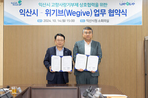 고향사랑기부제 민간 플랫폼 '위기브'(Wegive)를 운영하는 사회적기업 ㈜공감만세는 전북특별자치도 익산시와 지난 14일 익산시청 소회의실에서 고향사랑기부제 홍보 대행 업무협약을 체결했다. 이번 협약은 위기브를 통해 익산시의 고향사랑기부금 모금 활동과 제공하는 답례품 정보, 기타 고향사랑기부제와 관련한 정보를 홍보하고 성공적인 모금을 위해 상호 적극적으로 협력한다는 내용을 담았다. 이번 업무협약은 공감만세가 위기브 운영과 관련해 20번째로 체결한 업무협약이다. 고두환 공감만세 대표는 이처럼 많은 지자체와 업무협약을 맺을 수 있었던