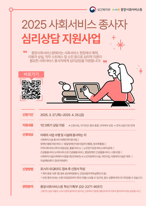 중앙사회서비스원, '사회서비스 종사자 심리상담 지원사업' 참여자 모집