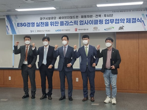 세이브더칠드런 동부지역본부가 이달 11일 대구시설공단, 해동자원(주), 건백(주), 우시산과 함께 미래 세대 기후 위기 아동들의 생존권 보장을 위해 폐 페트병 업사이클링을 위한 자원순환 업무 협약을 채결했다.협약 기관들은 플라스틱 업사이클링 과정에 함께 참여한다. 대구시설공단 임직원들이 폐트병을 모으고, 해동자원에서 페트병을 수거 및 칩 가공을 한다. 가공된 칩을 건백에서 재생섬유소재로 만들고, 우시산과 함께 업사이클링 제품을 생산한다. 생산된 제품은 대구지역 기후 위기 취약 아동들에게 지원된다.이번 활동으로 지역사회에서는 기후 위