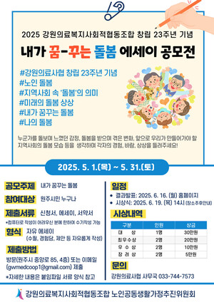강원의료사협, 창립 23주년 맞아 '내가 꿈-꾸는 돌봄 에세이 공모전' 개최