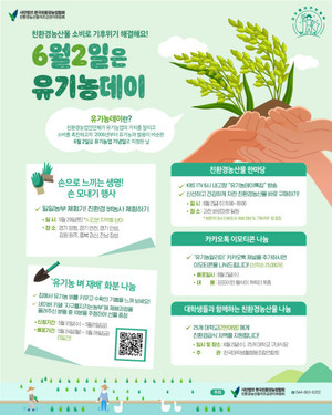 사단법인 한국친환경농업협회와 친환경농산물자조금관리위원회는 1일 청계광장에서 지구를 지키는 농부와 함께하는 '유기농데이'를 개최했다. 유기농데이는 유기농업의 가치를 알리고 소비를 촉진하고자 유기농과 발음이 비슷한 6월 2일을 유기농업 기념일로 지정한 날이다. 올해는 유기농데이를 맞이하여 '건강과 지구를 지킬 때! 친환경 농산물'이란는 주제로 기후위기를 극복하기 위한 다양한 식문화 행사와 건강하고 신선한 친환경농산물을 구매할 수 있는 마켓 등 다양한 이벤트가 펼쳐졌다.