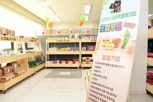 경북 김천시는 24일 지역 내 사회적경제기업 제품을 판매하는 매장의 문을 열었다고 밝혔다.김천시는 삼락동 LH행복주택 내 127㎡에 사회적경제기업 10개사 제품을 판매하는 전문 매장을 개장했다. 한국토지주택공사(LH)가 로컬푸드 판매장을 무상 사용할 수 있도록 제공했다.판매에 참여한 사회적경제기업은 더고운사회적협동조합, 농업회사법인 이웃사촌, 영농조합법인 마을기업 들마실, 영농조합법인 김천두메숲골 힐링마을, 보나광덕협동조합 등이다. 이들 기업은 직접 생산한 쿠키, 마스크, 농산물, 손수건 등을 판매한다.김충섭 김천시장은 "로컬푸드