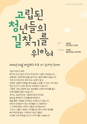 라이프인, 주제가 있는 대화 '고립된 청년들의 길 찾기를 위하여' 오는 29일 진행