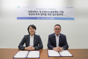 한국사회투자가 벤처캐피탈 가이아벤처파트너스와 ESG 및 소셜임팩트 기업 육성과 투자 협력을 위한 업무협약(MOU)을 체결했다고 13일 밝혔다.협약식은 지난 10일 서울 강남구 소재 가이아벤처파트너스 사무실에서 진행됐으며, 한국사회투자 이순열 대표와 가이아벤처파트너스 김학윤 대표가 참석했다. 주요 협력 내용은 ▲ESG/소셜임팩트 기업 발굴 및 정보 교류 ▲ESG/소셜임팩트 기업에 대한 투자 및 투자 확대를 위한 협업 ▲양 기관의 인프라 공유 및 인적교류 등이다.이번 협약에 따라 한국사회투자와 가이아벤처파트너스는 사회서비스를 비롯한 E