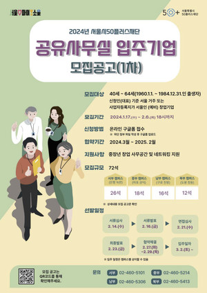 서울시50플러스재단, 공유사무실 입주기업 모집..."중장년 창업의 새로운 기회"