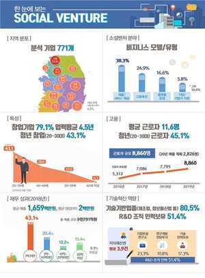 중소벤처기업부는 6일 성동구 소재의 헤이그라운드에서 소셜벤처 현장간담회를 개최하고 ’2019년 소셜벤처 실태조사 결과‘ 발표와 온·오프라인으로 소셜벤처의 건의 및 애로사항을 청취했다고 밝혔다.소셜벤처는 기술성과 혁신성을 보유하면서 사회적 가치도 실현하는 기업들을 말한다. 이번 실태조사는 2019년 소셜벤처 육성사업의 일환으로 수행한 조사로 소셜벤처로 추정되는 기업군을 발굴한 뒤, 소셜벤처로 판별된 998개사 중 설문에 응답한 771개사를 대상으로 조사를 실시했다.국내 소셜벤처 기업수는 ‘16년말 601개사에서 급속히 증가해 현재 9