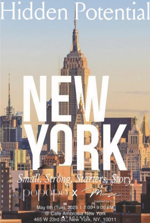 오는 5월 6일 오후 7시, 미국 뉴욕 첼시의 카페 앰브로시아에서 엄마의 잠재력에 주목하는 매거진 '포포포'와 지속가능한 비건 패션 브랜드 'Muse Inspired by You'가 공동 주최하는 '프로젝트 히든 포텐셜'의 첫 행사가 열린다. Mother's Day 주간을 맞아 'Small but Strong, Starter's Story(작지만 강한, 시작하는 사람들의 이야기)'라는 슬로건 아래, 급격한 변화의 시대에 자신만의 방향과 고유성을 찾는 이들의 이야기에 주목한다.