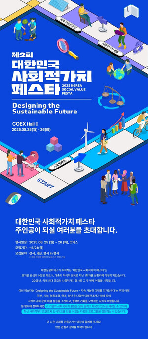 대한민국 사회적 가치 실현을 위한 최대 규모 행사인 '제2회 대한민국 사회적가치페스타'가 25일 서울 코엑스에서 개막했다. 올해 행사는 '지속 가능한 미래를 디자인하다(Designing the Sustainable Future)'를 주제로, 기후위기·저출생·불평등 등 복합적 사회문제 해결을 위한 민·관·산·학의 협력 방안을 논의하는 장으로 마련됐다. 이번 행사는 지난해 하루 일정으로 진행된 1회 대회에서 나온 피드백을 반영해, 이틀간 진행되는 것으로 확대됐다. 전시·홍보 부스 230여 개, 판매 부스 50여 개가 마련됐으며, 정부·