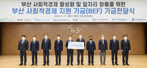 기술보증기금, 부산도시공사, 부산항만공사, 주택도시보증공사, 한국남부발전, 한국예탁결제원, 한국자산관리공사(캠코), 한국주택금융공사, 한국해양진흥공사 (가나다順) 등 부산지역 9개 공공기관이 사회적경제조직에 이어 소셜벤처까지로 투자대상을 확대한다.캠코 등 부산지역 9개 공공기관은 17일 부산국제금융센터 3층 캠코마루에서 '부산 사회적경제 지원 기금(BEF)'으로 조성한 11억 7000만 원을 위탁관리기관인 ㈔사회적기업연구원에 전달했다. BEF 사업은 2018년 시작돼 5년간 총 50억 원 조성을 목표로 했으나 지난 4년간 40억 원