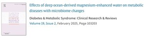 최근 2025년 2월 Diabetes & Metabolic Syndrome: Clinical Research & Reviews에 게재된 연구에 따르면, 마그네슘이 풍부한 물(MEW(Magnesium-Enriched Water))이 체내 미생물 다양성을 높이고 대사성 질환 예방에 기여할 수 있는 것으로 나타났다. 이번 연구는 숙명여자대학교 약학대 양미희 교수팀이 주도했다. 연구진은 고혈압, 당뇨병, 고지혈증을 가진 성인 환자를 대상으로 무작위 임상 시험을 진행하여 MEW(Magnesium-Enriched Water)의 효과를 분석했다