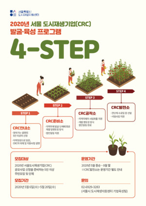 서울시가 예비 도시재생기업(Community Regeneration Corporation: CRC)을 발굴해 법인 설립부터 비즈니스 모델 창출까지 맞춤형으로 종합 지원하는 '2020 서울 도시재생기업(CRC) 4단계 발굴·육성 프로그램'을 시작한다.'도시재생기업'은 일종의 도시재생 마을기업으로, 다양한 지역 자원을 결합·활용해 지역문제를 해결하고 지역의 선순환 경제 생태계를 구축하는 지역 기반·주민주도 기업이다. 공공의 마중물사업에 참여하는 것은 물론, 마중물사업 종료 이후에도 지속적으로 지역의 재생을 추진하고, 자생을 가능하게 하