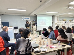 스프링샤인 사회적협동조합(이하 스프링샤인)이 주한프랑스대사관 경제상무관실(비즈니스 프랑스) 임직원을 대상으로 ESG 도자기 텀블러 만들기 체험 행사를 진행했다.스프링샤인은 지난 2016년부터 발달장애인 예술가를 발굴하고, 전문 교육을 통해 발달장애인 도예 강사를 양성하는 등 직업재활 사업을 시행해 왔다. 특히 발달장애인 도예 강사 양성 프로젝트로 약 8년간 다수의 장애인 도예 강사를 배출했다.이번 체험 행사 역시 발달장애인 도예 강사가 진행을 맡았다. 전준혁, 박진오 작가 등 10년 이상의 경력을 가진 발달장애인 도예가가 지도하여