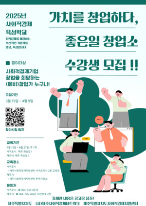 제주특별자치도와 서귀포시가 지역의 가치를 발견하고 사회 문제를 해결하는 혁신 창업가 양성을 위해 '2025년 사회적경제 육성학교(이하 육성학교)' 수강생을 모집한다. 이번 교육은 제주시와 서귀포시에서 동시 진행되며, 도내 창업 희망자들의 폭넓은 참여를 유도하기 위해 마련됐다.올해 새롭게 개편된 육성학교는 단순한 창업 교육을 넘어, 지역 문제 해결형 비즈니스를 설계하고 실행할 창업가를 발굴하는 데 초점을 맞춘다. 모집 기간은 3월 19일부터 내달 9일까지며, 창업을 계획 중이거나 사회적 가치를 기반으로 한 사업을 구상하는 제주 도민이