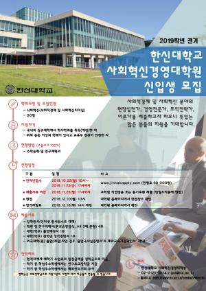 한신대 사회혁신경영대학원, 2019 전기 신입생 모집