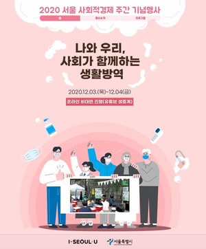 서울시는 오는 3일과 4일 양일간 '2020 서울 사회적경제 주간 기념포럼'을 개최한다고 2일 밝혔다.서울시는 매년 7월, 사회적기업의 날(7월 1일)과 협동조합의 날(7월 1주 토)을 기념하는 사회적경제주간을 진행 해왔으며 올해는 신종 코로나바이러스 감염증(코로나19)으로 당초보다 늦은 12월, 온라인으로 개최하게 됐다고 덧붙였다.올해 사회적경제 주간 기념 포럼의 주제는 '나와 우리, 사회가 함께하는 생활방역'이다. 서울시와 행사의 주축을 이루는 사회적경제 4대 부문(사회적기업, 협동조합, 마을기업, 자활기업)이 분야별 전문가 포