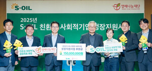 지난 8일, 사회복지법인 열매나눔재단이 에쓰오일과 함께 '2025 에쓰오일 친환경 사회적기업 성장지원사업'의 시작을 알리는 후원금 전달식을 진행했다고 밝혔다.이번 4기에는 5개 (예비)사회적기업이 선정됐다. ▲폐원단이나 가죽을 활용해 업사이클링 제품을 생산하는 '오운유' ▲폐옷과 현수막 등을 활용해 자원순환 섬유 패널을 생산하는 '세진플러스' ▲멸종위기 식물을 복원해 생물다양성 문제를 해결하는 '위플랜트' ▲음식물과 축산 폐기물을 활용해 고형연료 제품을 생산하는 '에스비티엔텍' ▲정화조 안전 솔루션을 통해 화재 및 폭발 사고를 예방