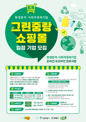 (사)한국마이크로크레디트 신나는조합은 서울시와 중랑구청, 유통·유지 보수 전문 사회적기업 (주)그린주의의 후원을 받아 환경분야 사회적경제기업을 대상으로 '그린 중랑 쇼핑몰(온라인, 오프라인) 입점 기업'을 모집한다.이번 사업은 환경분야 사회적경제기업의 우수제품을 발굴하고 판로를 지원하여, 기업 경쟁력 강화를 돕고 친환경적 생산과 가치소비 확산 기여를 목표로 한다.신청 자격은 재활용·자원순환, 녹색·친환경 제품 등을 통해 기후위기와 자원고갈의 환경이슈 해결을 목표하는 사회적경제기업이어야 한다. 또한 온·오프라인 쇼핑몰에서 판매할 수