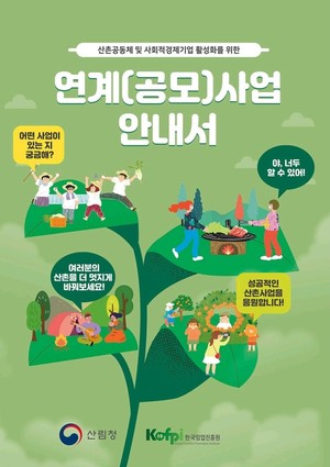 산림청과 한국임업진흥원은 산촌의 인구감소와 고령화 등 현실의 문제를 극복하고, 산촌지역의 활력을 높이기 위해 산촌활성화 사업과 사회적경제기업 발굴과 육성을 위한 맞춤형 성장 지원 사업을 운영하고 있다.그 일환으로 2023년 산촌공동체 및 산림분야 사회적경제기업의 사업이 지속가능성을 확보할 수 있도록 외부 자원 연계를 위한 '산촌공동체 및 사회적경제기업 활성화를 위한 연계(공모)사업 안내서'(이하 안내서)를 제작하여 배포했다. 안내서에는 41건의 연계(공모)사업을 소개하고 있으며, 산림청을 비롯한 농림축산식품부·행정안전부·문화체육관광