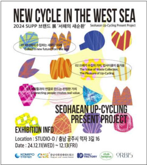 서해안 해양쓰레기 문제를 알리고 해결하기 위한 프로젝트인 SUPP(Seohaean Up-cycling Present Project) 브랜드 전시회 '서해의 새순환'이 오는 11일부터 13일까지 충청남도 공주시에 위치한 스튜디오-D에서 열린다.이번 전시회의 소주제는 ▲바다에서 수집하는 새로운 미래 ▲쓰레기 수집의 가치, 업싸이클의 즐거움 ▲사람들과의 연결로 만드는 진정한 가치 등이다. SUPP 프로젝트의 활동 홍보 및 브랜드 인식 확산에 목적이 있다. SUPP 프로젝트는 서해안에 버려지는 쓰레기를 수집해 새로운 가치로 재생산하는 '해