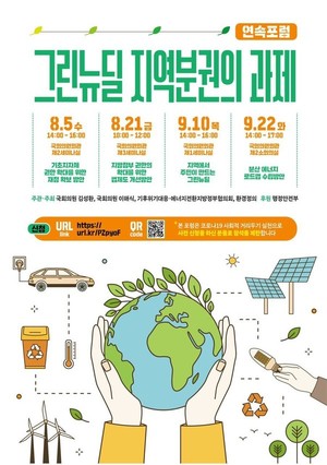 기후위기 시대이다. 중앙집중형 에너지 체계가 지역분권형 재생에너지 체계로 전환해 지역기반의 그린뉴딜을 실현하기 위해서 정부는 탈탄소사회로의 비전을 제시하고, 과감한 재정투자를 해야 한다. 김성환 의원실, 이해식 의원실, 기후위기대응·에너지전환지방정부협의회, (사)환경정의는 8월 5일부터 9월 22일까지 국회의원회관에서 '그린뉴딜 지역분권의 과제'를 주제로 4회 연속포럼을 개최했다.