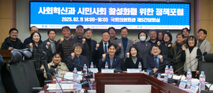 현재 한국 사회는 새로운 전환점을 맞이하고 있다. 12.3 비상계엄과 이후 벌어진 일련의 사건들로 인해, 민주주의 회복을 비롯한 다양한 사회 의제가 공론장에 펼쳐졌고 탄핵 정국이 지난 후 우리 사회는 어떤 모습이어야 할지에 관한 많은 논의가 이루어지고 있다. 이런 시점에서 시민사회와 그를 중심으로 한 사회혁신 역량을 어떻게 키울 것인지에 대해서도 점검하고 방향성을 모색할 필요가 있다는 목소리가 나온다.이에 국회시민정치포럼과 (사)한국사회혁신가네트워크, 시민사회활성화전국네트워크와 한국시민사회지원조직네트워크는 11일 서울 국회의원회관에