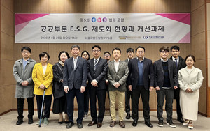 한국법제연구원은 25일 서울지방조달청 PPS홀에서 '공공부문 E.S.G. 제도화 현황과 개선과제'를 주제로 제5차 ESG 법제 포럼을 개최했다. 이번 포럼은 2022년부터 시작된 한국법제연구원의 연속 포럼으로 공공부문 ESG 평가체계를 진단하고, 향후 개선과제를 전망하기 위해 기획됐다. 이날 발표는 황인창 서울연구원 연구위원과 김세훈 지방공기업평가원 실장, 이웅희 회계기준원 센터장이 각각 맡았다. 황인창 연구위원은 '서울공기업 대상의 ESG 평가체계 구축 및 적용 사례'라는 제목으로 서울시가 ESG 경영 확대를 위한 정책 수립의 필