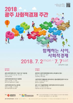 광주광역시가 주최하고 광주사회적경제지원센터가 주관하는 '2018년 광주 사회적경제주간 기념행사'가 7월 2일부터 7일까지 개최된다. '2018년 광주 사회적경제주간'은 사회적기업의 날(7.1)과 협동조합의 날(7.7)을 기념해 열린다. '함께하는 사이, 사회적경제'라는 슬로건으로 사회적경제기업에 대한 이해를 돕고 사회적경제기업가의 활동을 장려하기 위한 기념행사도 함께 진행된다.먼저 7월 4일에는 광주 사회적경제 주간의 시작을 알리는 기념식과 기념포럼이 CMB광주방송 1층 전시홀에서 진행된다