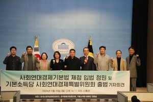 기본소득당 사회연대경제특별위원회와 한국사회적경제연대회의, 전국협동조합협의회가 '사회연대경제기본법 제정 입법을 위한 국민청원 참여 및 기본소득당 사회연대경제특별위원회 출범'에 관한 기자회견을 25일 오후 1시 국회소통관 기자회견실에서 열었다. 기본소득당 용혜인 대표는 지난 5일 사회연대경제기본법을 대표 발의했으며, 25일 오전에는 기본소득당 사회연대경제특별위원회(이하 사경특위) 발대식이 진행됐다. 기본소득당은 사경특위 위원장으로 이승석 최고위원(前한국사회적경제연대회의 상임대표)을 임명하고, 사회연대경제 종사자, 전문가, 학계, 지원기