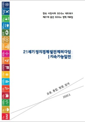 한국시민사회SDGs네트워크(이하 SDGs시민넷)가 2020년 제21대 총선을 맞아 '지속가능발전'에 대한 국회의원 후보 및 정당의 인식을 높이고, 지속가능발전을 위한 정치·외교, 경제, 사회, 환경 정책을 제안하고자 'SDGs 정책자료집'을 제작했다. 'SDGs 정책자료집'은 SDGs시민넷의 공동 정책운동 과제인 '지속가능발전법' 개정 및 '참여·숙의 공론화 장 제도화'와 함께, SDGs시민넷에 참여하고 있는 여성, 장애인, 주거, 환경분야 시민사회단체들이 올해 초 이미 발표한 제21대 총선 대응 정책제안내용을 17개 SDGs별로