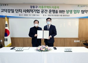 서울주택도시공사(SH공사)와 강동구청은 고덕강일지구 7개단지(4,6,7,8,11,13,14 단지) 내 사회적기업 입주공간에 대한 관리 운영 위탁을 골자로 하는 업무협약(MOU)을 체결했다고 1일 밝혔다.이번 업무협약에 따라 SH공사는 고덕강일 7개 단지의 사회적기업 입주공간을 무상으로 제공하고, 법령 및 공사 장기수선계획에 따른 시설물 유지보수 업무를 맡을 예정이다.강동구청은 입주기업의 선정, 평가 및 변경과 사회적기업의 활동 지원 등 공간의 운영 업무를 수행한다. 또한 입주기업의 선정 및 평가 과정에 입주민을 참여시켜 지역사회 공