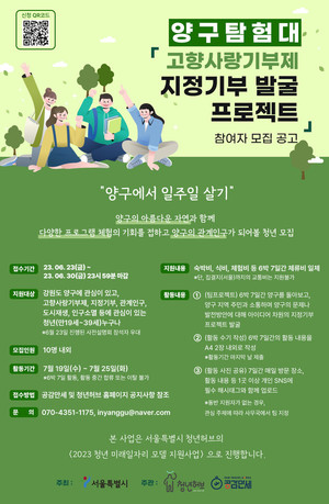 서울특별시 청년허브와 사회적기업 공감만세는 '2023 청년 미래일자리 모델 지원사업'의 일환으로 청년들이 지역소멸 위기에 있는 지역인 강원도 양구군에서 일주일살이를 하며 고향사랑기부제를 활용한 지역 활성화 전략 수립에 참여하는 '양구탐험대, 지정기부 발굴 프로젝트'(이하 '양구 탐험대')를 진행한다.양구탐험대는 인구 2만 1342명(2023년 5월 기준)으로 행정안전부에서 지정한 인구 감소 지역이자, 지역 소멸 위기 지역인 강원도 양구군에서 서울 청년이 미래일자리를 모색하는 프로젝트다. 출산율 감소 및 고령화, 수도권 인구 과밀화로