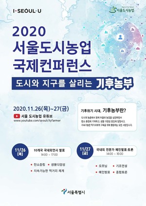 서울시는 전 세계 도시농업 전문가가 참여하는 '2020 서울 도시농업 국제컨퍼런스(2020 Seoul International Conference on Urban Agriculture)를 26일~27일 양일간 온라인으로 개최한다. 모든 일정은 서울시 도시농업 유튜브 채널(국.영문)을 통해 실시간 생중계 된다.도시농업 국제컨퍼런스는 세계 도시농업의 다양한 사례 공유와 협력을 통해 세계 도시농업인 연대 및 지속 발전가능한 도시를 만들어 가고자 2012년부터 매년 현장워크숍과 함께 개최했다. 올해는 코로나19로 인하여 전면 온라인으로 개