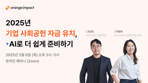 AI 기반 임팩트테크 기업 마이오렌지㈜가 소셜임팩트 조직을 대상으로 '2025년 기업 사회공헌 자금 유치, AI로 더 쉽게 준비하기' 웨비나를 내달 6일 오후 3시부터 5시까지 온라인(Zoom)으로 개최한다.이번 웨비나는 2025년 CSR(기업 사회공헌) 및 ESG 트렌드를 포함해 AI 기반 임팩트 측정과 스토리텔링 전략 등을 다루며, 조직이 기업 자금을 유치하고 성과를 증명하는 핵심 정보를 제공한다.프로그램은 크게 세 가지 세션으로 진행된다. 첫 세션에서는 2025년 CSR 주요 동향과 기업이 선호하는 협업 분야, 그리고 협력 시