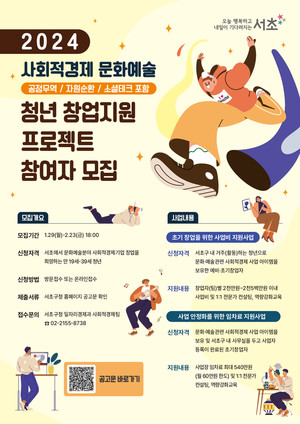 서초구, '사회적경제 문화예술 청년 창업지원 프로젝트' 참여자 모집