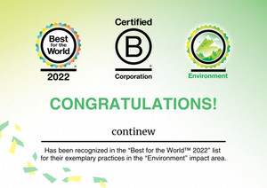 컨티뉴, 비콥 환경 부문 '2022 세계를 위한 최고 기업(BFTW)'에 선정