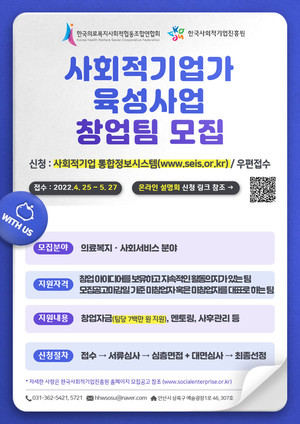 의료사협연합회, 사회적기업가 육성사업 예비창업팀 모집