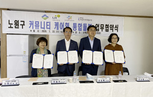 함께걸음의료복지사회적협동조합은 22일 지역사회 통합돌봄 서비스가 제공되는 지원주택에서(서울 노원구 소재) 사회적경제 조직 네트워크를 통한 지역사회 통합돌봄 체계구축을 실행하기 위해 관계기관 간 상호업무협약(MOU)을 체결했다.이번 협약식에는 함께걸음의료복지사회적협동조합, 한국사회적기업진흥원, LH 한국토지주택공사 서울지역본부, 노원구청이 함께했다. 관계기관들은 이번 협약으로 지역 주민의 필요를 반영한 커뮤니티 케어 정책의 구체적 사례가 필요하다는 것을 공감하고, 해당 사업이 성공적으로 추진되고 사회적경제 조직 확대 및 지역사회 통합