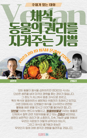 "비건이 되는 것은 나의 먹고 사는 일이 다른 생명의 죽임인지 살림인지, 지구의 죽임인지 살림인지 따져보는 일이다." _ 비혼이고요 비건입니다 中, 전범선, 2022자신을 12년 차 비건인이라고 소개한 전범선氏는 작가이자 밴드 '양반들'의 보컬, 동물보호단체 '동물해방물결'의 (철학) 자문위원을 맡아 주로 이론과 언어를 다듬는 일을 한다. 9월 주제가 있는 대화에서는 '채식, 동물의 권리를 지켜주는 기쁨'이라는 주제로 전범선 동물해방물결 자문위원과 함께 비건(채식)을 통해 지구와 생명을 살리는 방법에 관해 이야기를 나누었다.