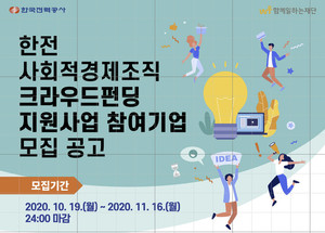 함께일하는재단-한국전력공사, 한전 사회적경제조직 크라우드펀딩 지원사업 공모 시작