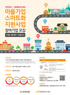함께일하는재단-한전KDN, '마을기업 스마트화 지원사업' 참가 기업 모집