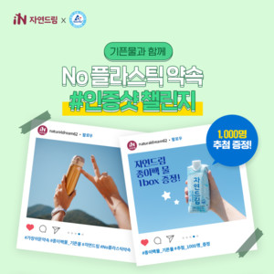 아이쿱자연드림이 '노(No) 플라스틱 약속 캠페인' 일환으로 '#인증샷챌린지'를 진행한다고 4일 밝혔다. 이번 인증샷 챌린지는 7월 4일부터 7월 31일까지 진행되며, 개인 참여자 중 추첨을 통해 뽑힌 1천 명은 미량미네랄이 다량 함유된 심층수 기픈물 1박스를 받을 수 있다.개인이 참여하는 방법은 ▲생활 속에서 No 플라스틱 약속을 실천하고 있는 사진(예: 일회용 플라스틱컵 대신 텀블러 혹은 기픈물 사용 등)을 찍고 ▲해시태그(#가장쉬운약속 #종이팩기픈물 #노플라스틱약속)와 함께 SNS에 콘텐츠를 작성한 후 ▲자연드림 캠페인 페이지
